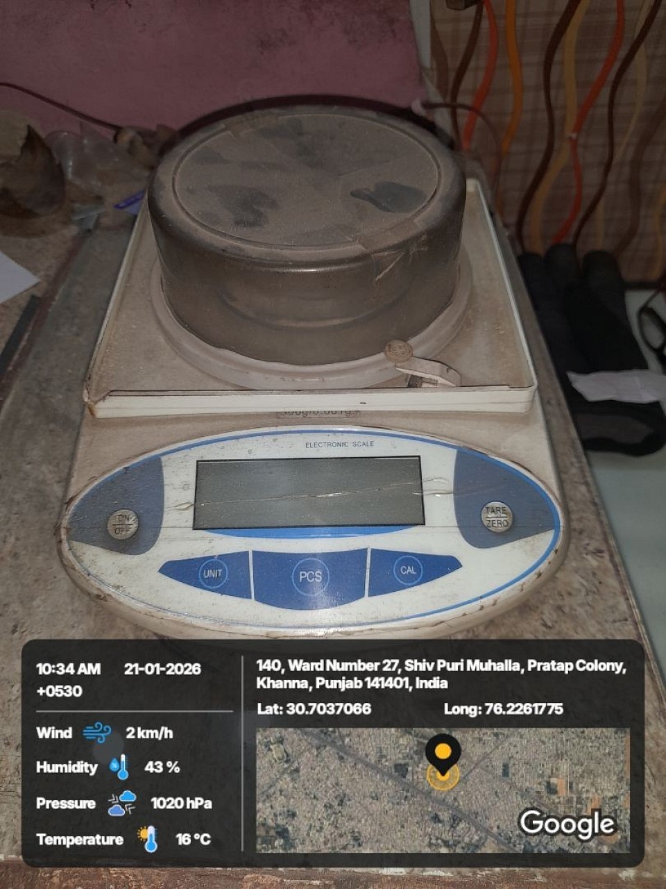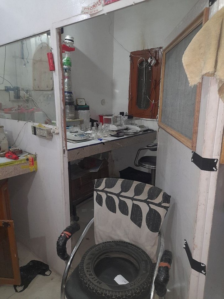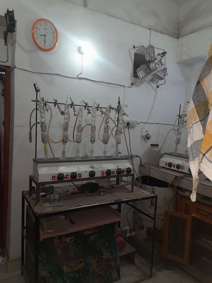 A cabin room laboratry room where weghing of sample occurs on weighing balance and making thimbles to pour sample 10g of rice bran in it